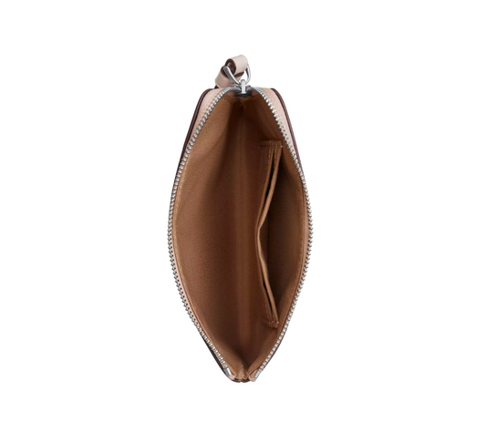 Monedero Coach Corner Zip Wristlet In Signature Canvas With Stripe Walnut True Red