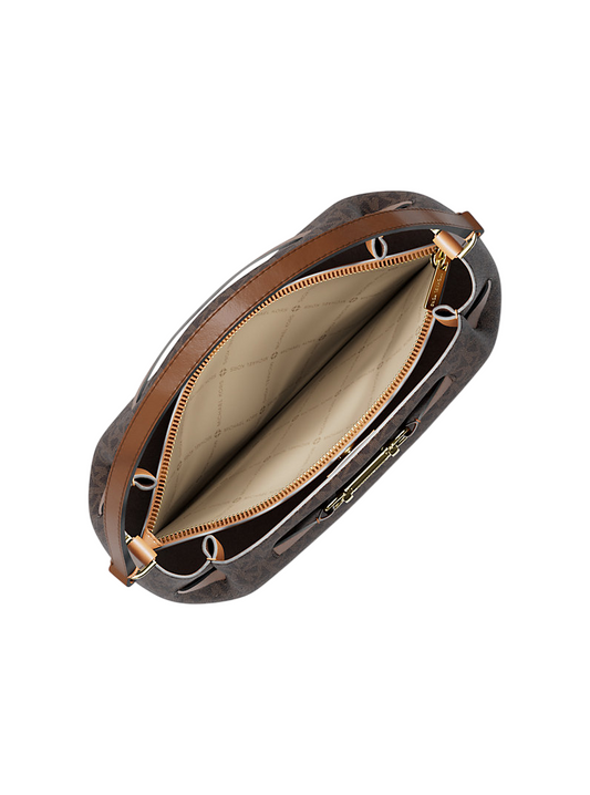 Bolsa Michael Kors Carson Medium Signature Logo Convertible Bucket Crossbody Bag Brown