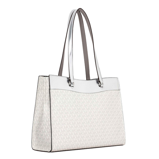 Bolsa Michael Kors Jet Set Large Signature Logo Tote Bag Silver