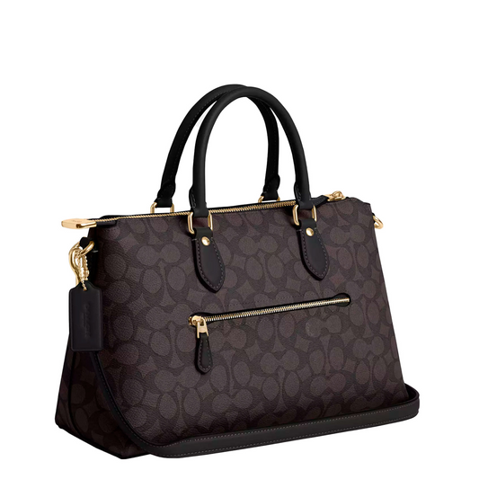 Bolsa Coach Georgia Satchel Bag In Signature Canvas Walnut Black