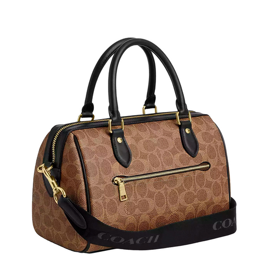 Bolsa Coach Rowan Satchel Bag In Signature Canvas Tan Black