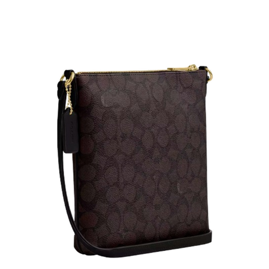 Bolsa Coach Slim Crossbody Bag Signature Canvas Tan Black