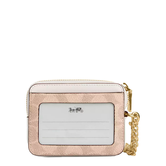 Monedero Coach Zip Card Case Signature Canvas Sand Chalk