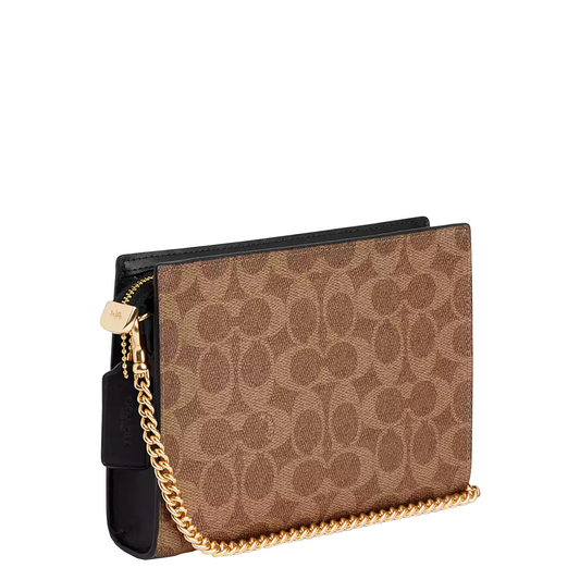 Mondero Coach Corner Zip Wristlet In Signature Canvas Tan Brown
