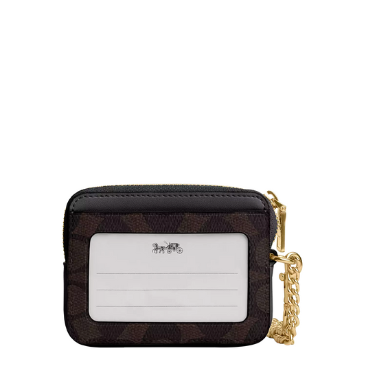 Monedero Coach Zip Card Case Signature Canvas Brown Black