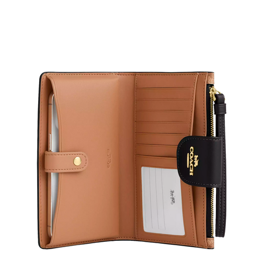 Cartera Coach Phone Wallet In Colorblock Signature Canvas Tan Black