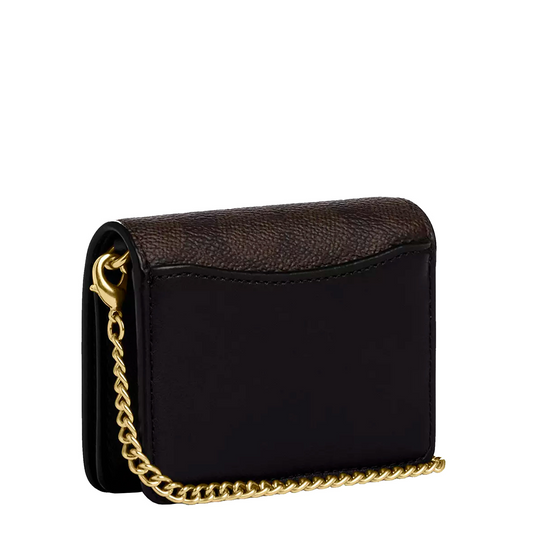 Bolsa Coach Mini Wallet On A Chain In Signature Canvas Walnut Black
