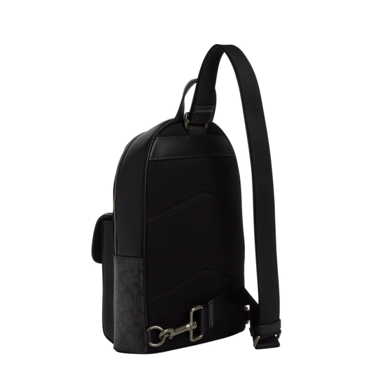 Bandolera Coach Turnlock Sling Pack In Signature Canvas Charcoal Black