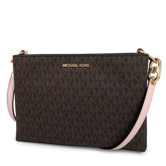 Bolsa Michael Kors Trisha Medium Logo Crossbody Brown Pink