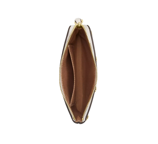 Monedero Corner Zip Wristlet In Signature Leather With Heart Charm Chalk