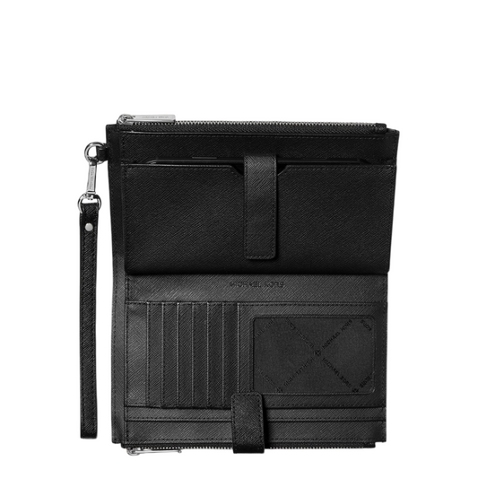 Cartera Michael Kors Jet Set Large Leather Smartphone Wristlet Wallet Black