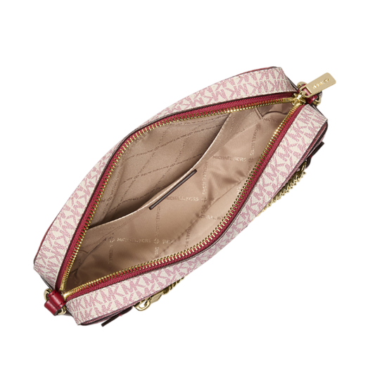 Bolsa Michael Kors Jet Set Large Metallic Signature Logo Crossbody Bag Cherry