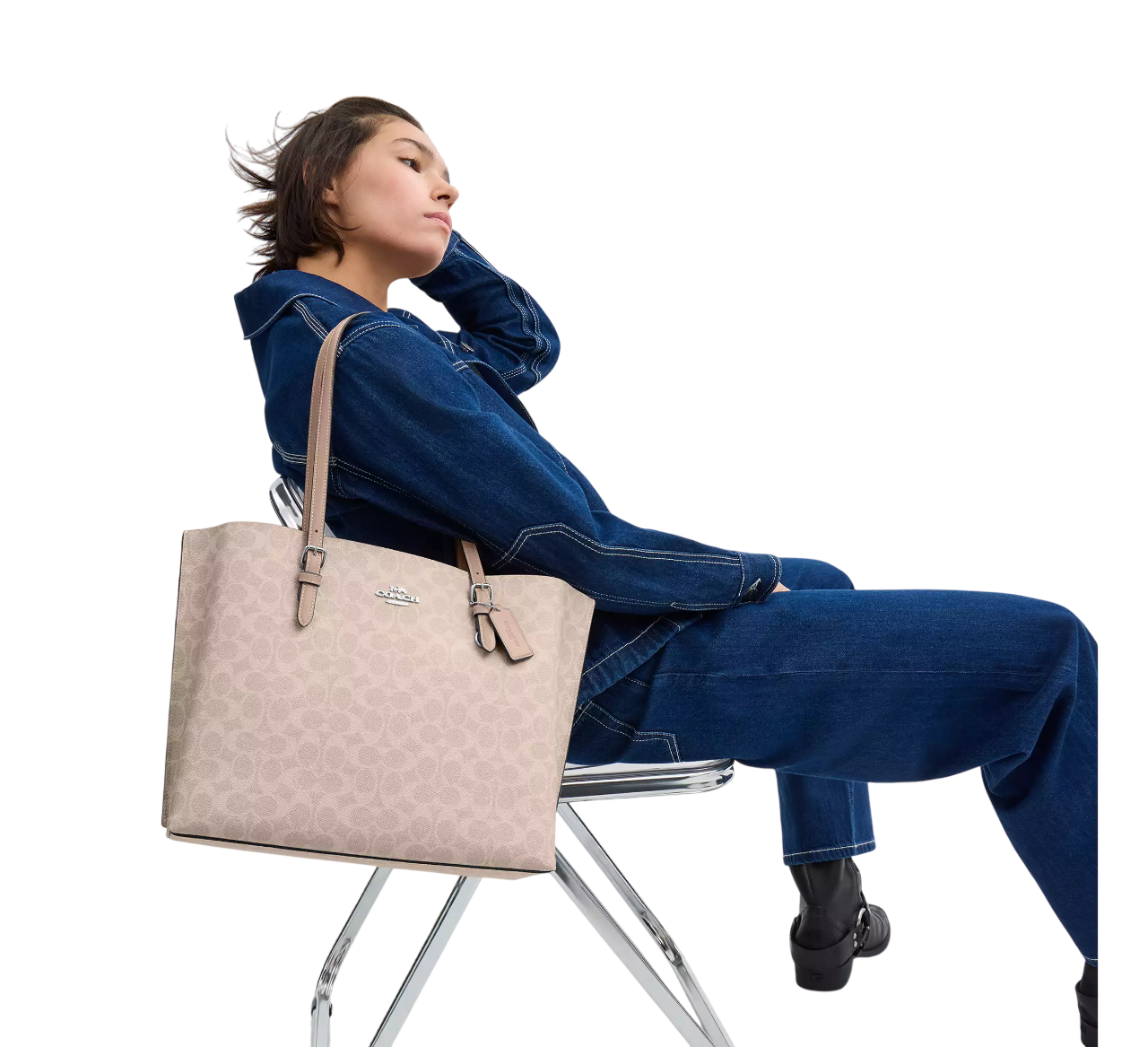 BOLSA DE HOMBRO PARA MUJER MARCA COACH. MODELO: MOLLIE TOTE BAG IN SIGNATURE CANVAS SAND CHALK. CV967. 196395541751. CON ETIQUETA Y QR MANUAL DE CUIDADOS