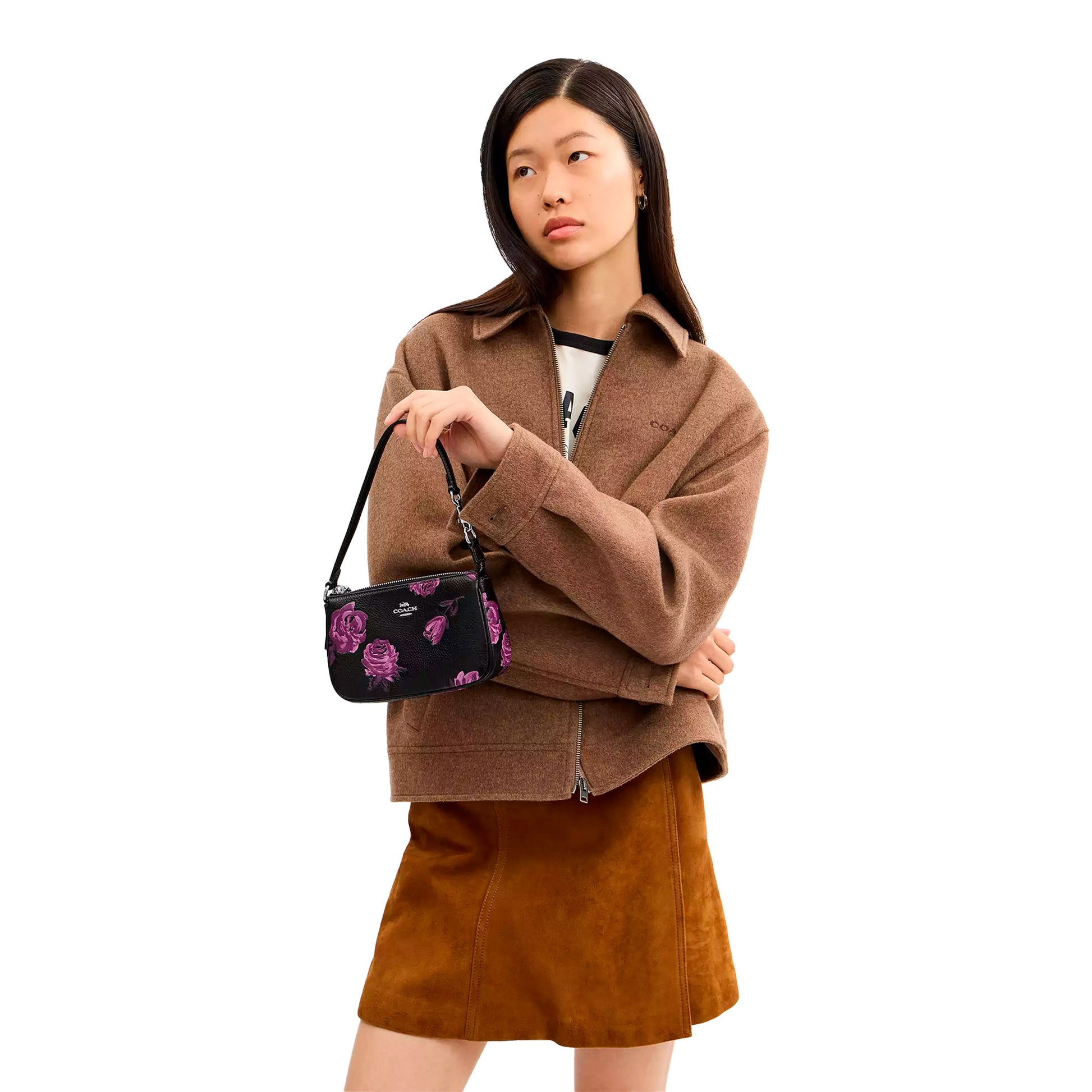 BOLSA DE MANO MARCA COACH. MODELO: NOLIA 19 WITH FLORAL PRINT BLACK PURPLE. CCF60. 198685000054. CON ETIQUETA Y QR MANUAL DE CUIDADOS