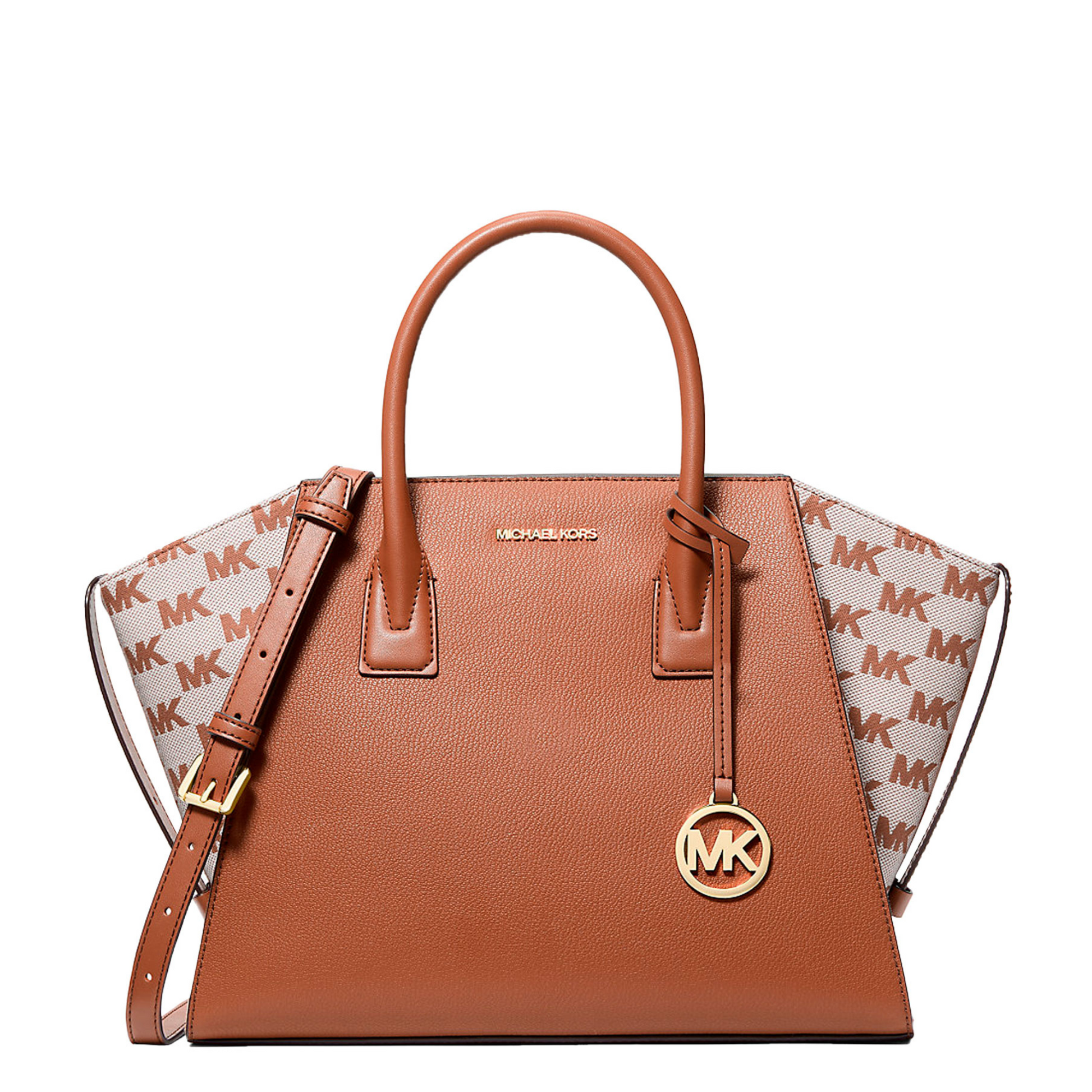 Bolsa Michael Kors Avril Large Leather and Logo Jacquard Satchel Luggage