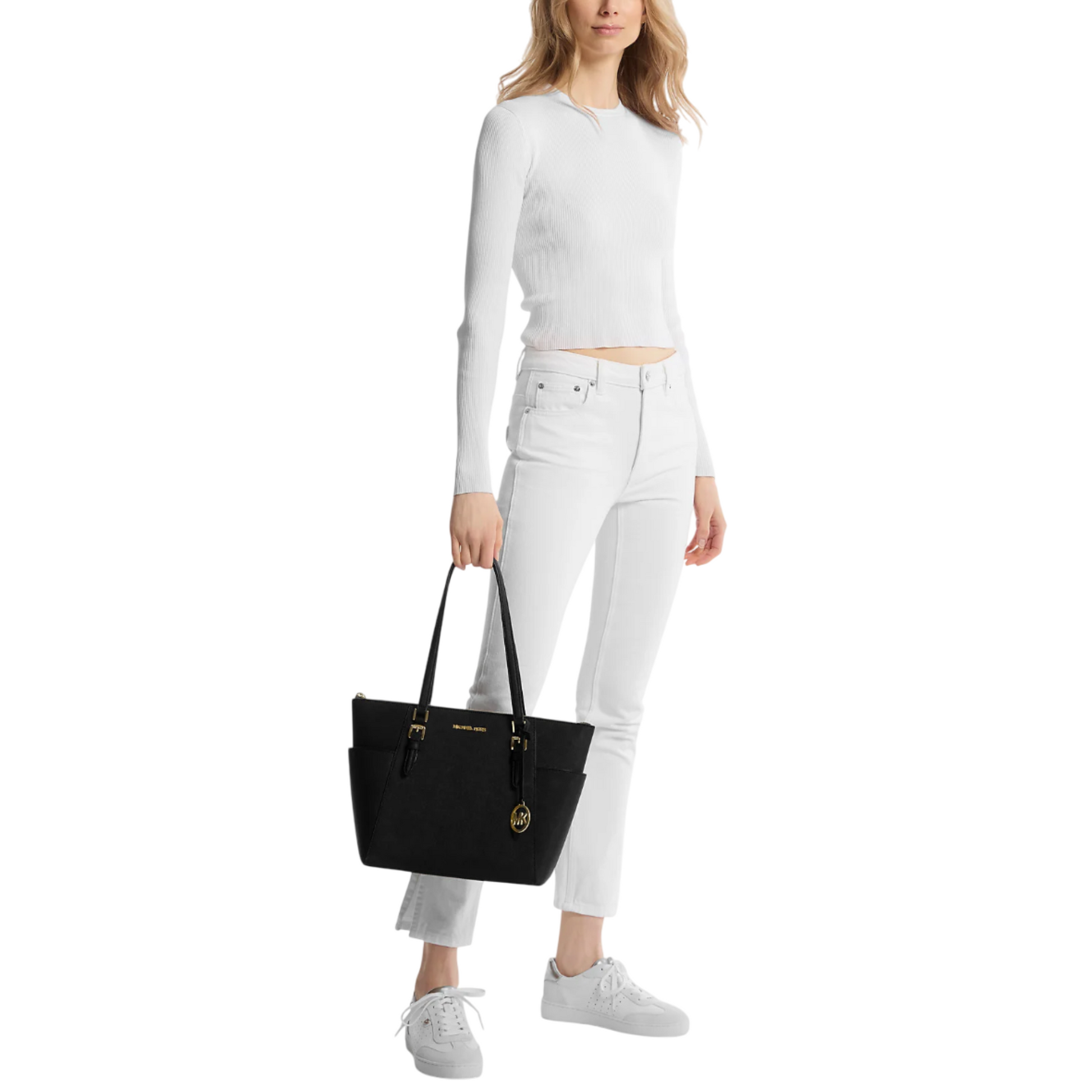 Bolsa Michael Kors Charlotte Large Saffiano Leather Top-Zip Tote Bag Black