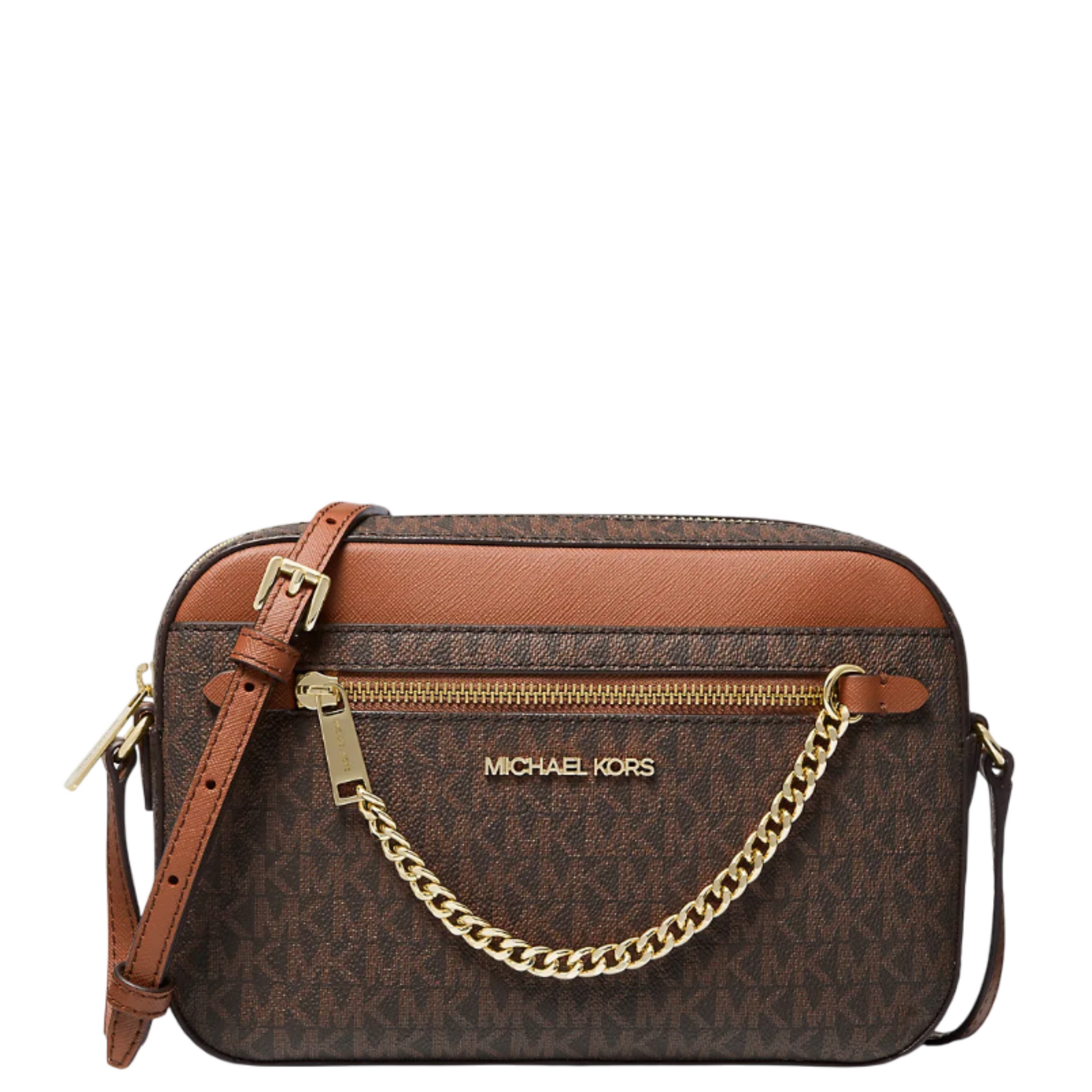 Bolsa Michael Kors Jet Set Large Logo Crossbody Bag Brown