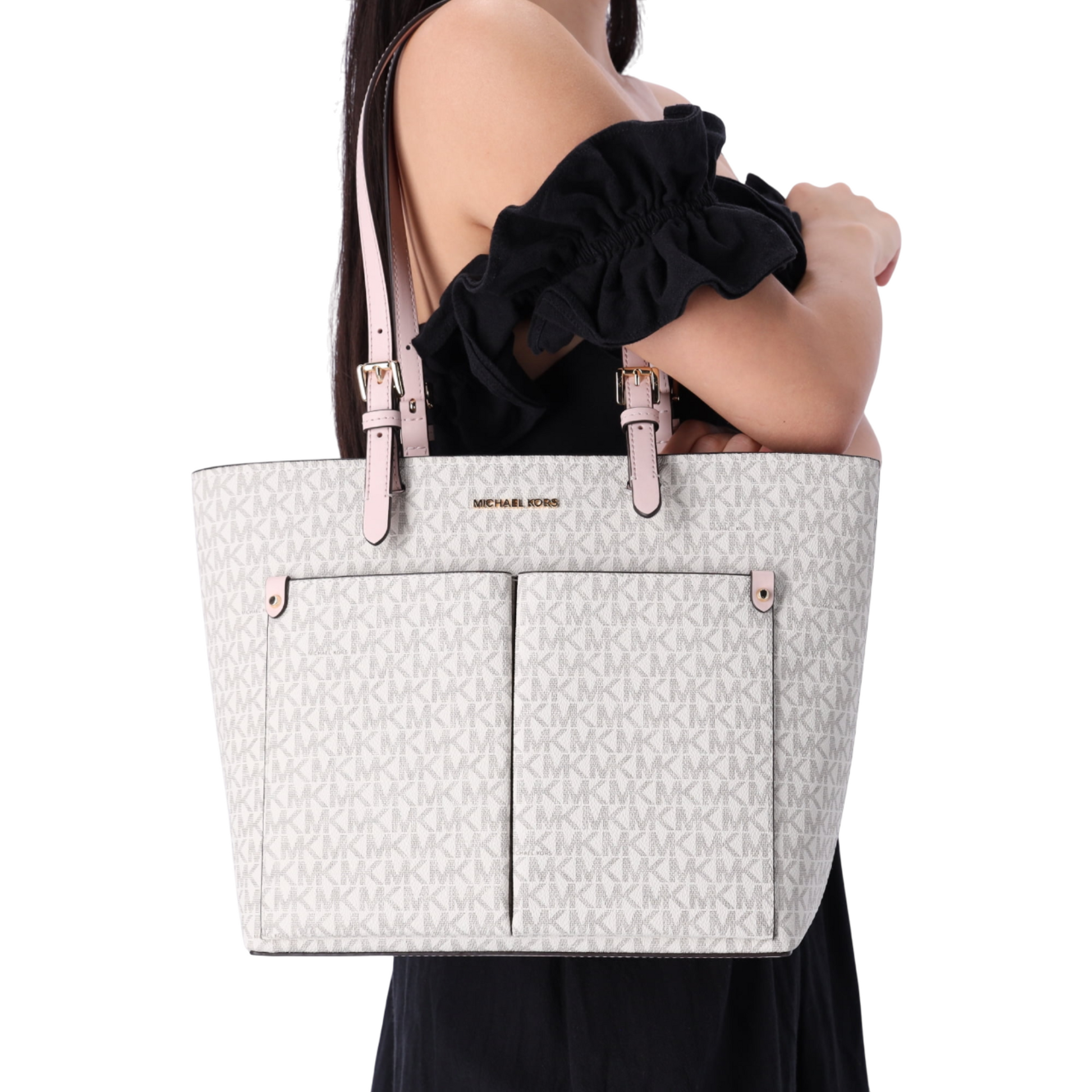 Bolsa Michael Kors Jet Set Medium Logo Pocket Tote Bag Power Blush