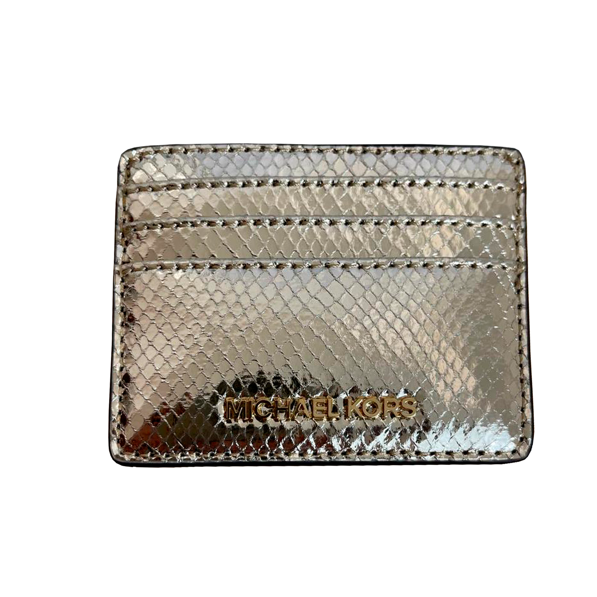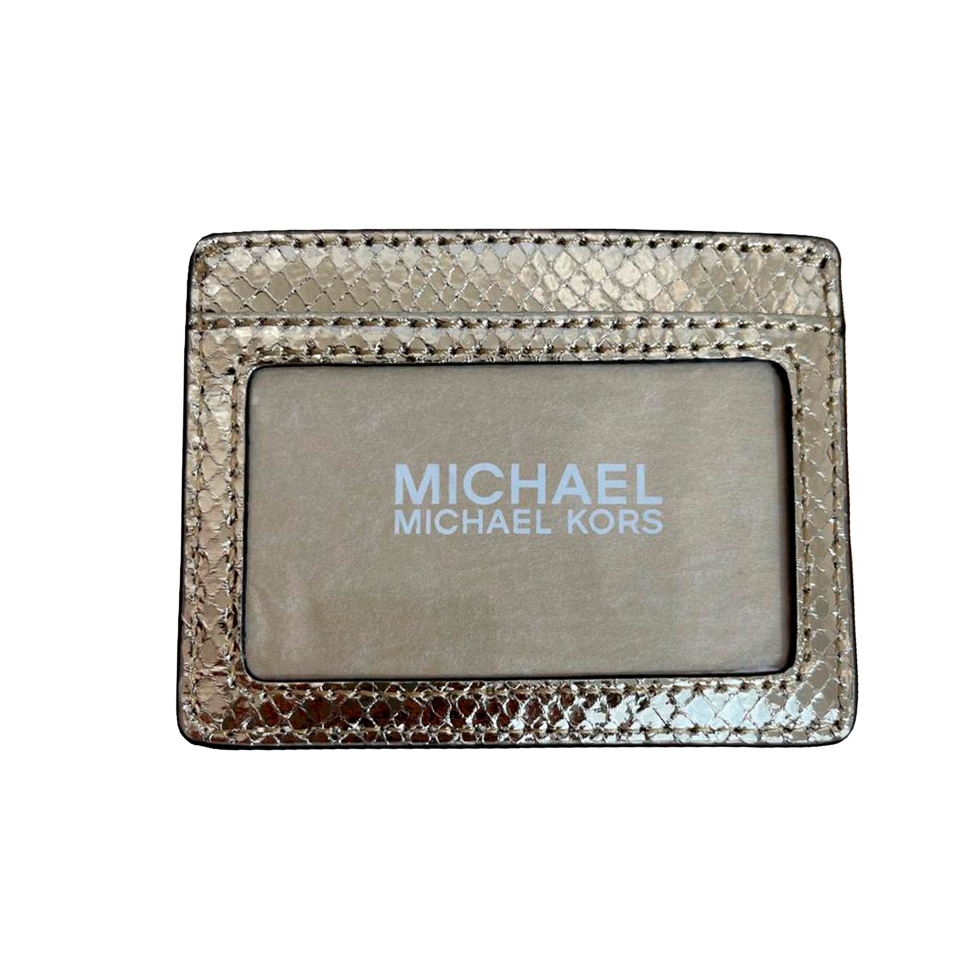 SET DE BOLSA Y TARJETERO EN CAJA DE REGALO MICHAEL KORS. MODELO: MEDIUM POUCH AND CARD CASE GIFT SET PALE GOLD. 35F4GGZD6M. 197853077263. CON ETIQUETA Y MANUAL DE CUIDADOS