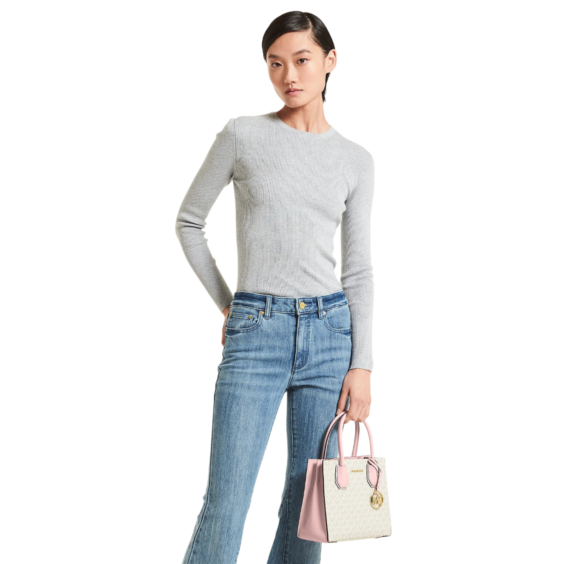 BOLSA PARA MUJER MARCA MICHAEL KORS. MODELO: MERCER MEDIUM LOGO AND LEATHER ACCORDION CROSSBODY BAG PWD BLSH MLT. 35S1GM9M2B. 194900271964. CON ETIQUETA Y MANUAL DE CUIDADOS