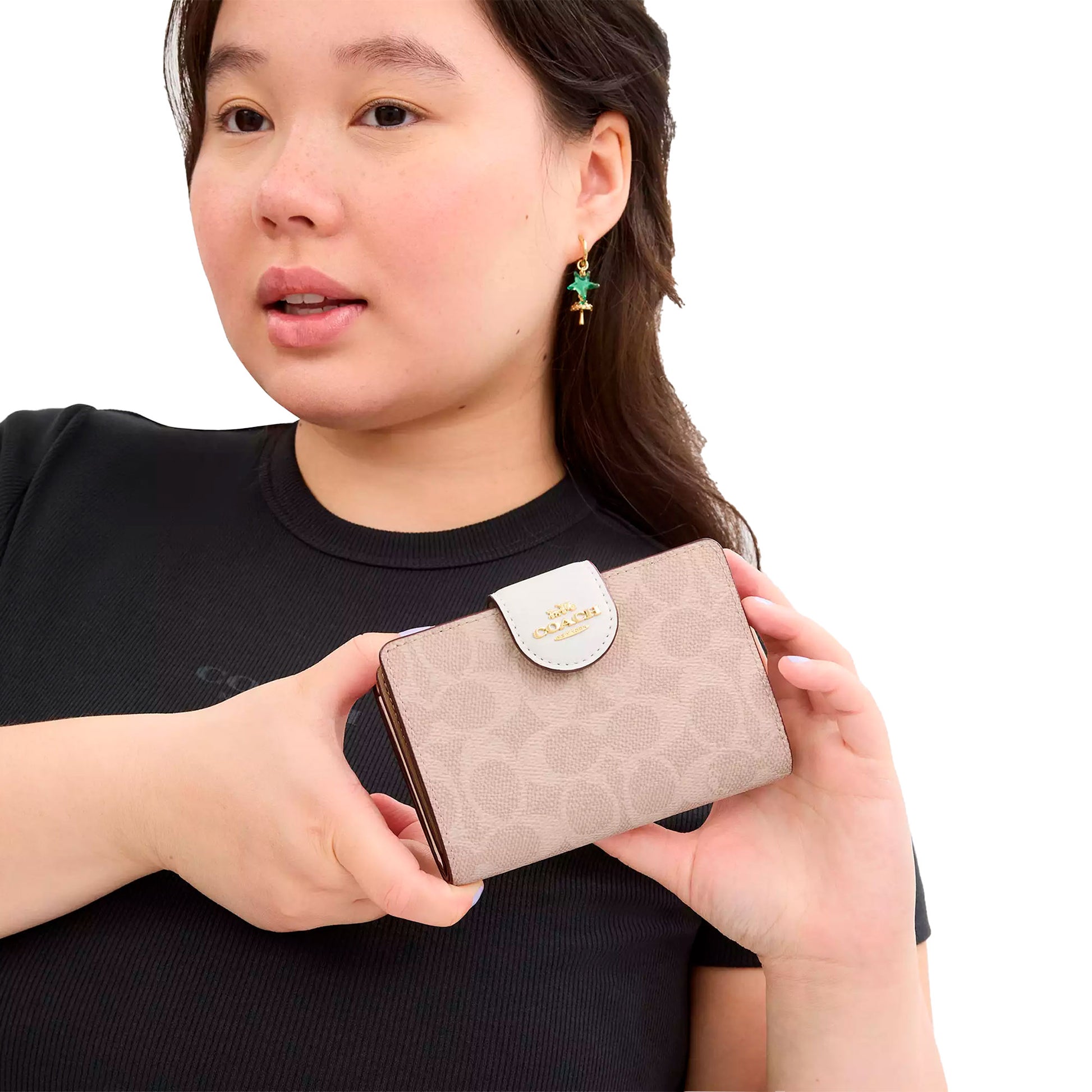 CARTERA PARA MUJER MARCA COACH. MODELO: MEDIUM CORNER ZIP WALLET IN SIGNATURE CANVAS SAND CHALK. CW786. NUEVA, IMPORTADA Y QR MANUAL DE CUIDADOS