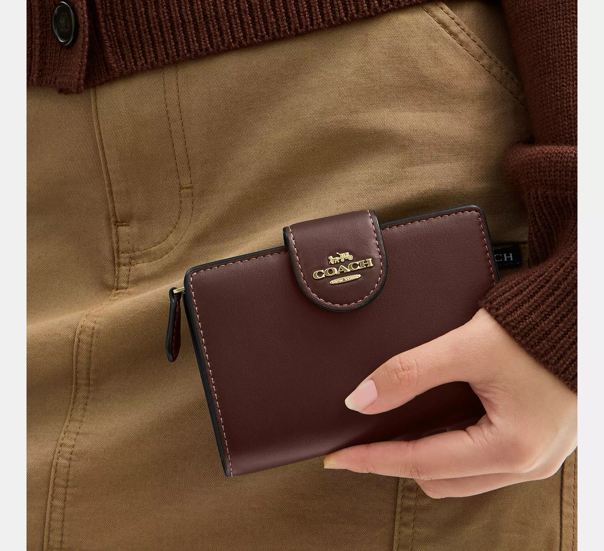 CARTERA PARA MUJER MARCA COACH. MODELO: MEDIUM CORNER ZIP WALLET MAPLE. CR791. 196395999088. CON ETIQUETA