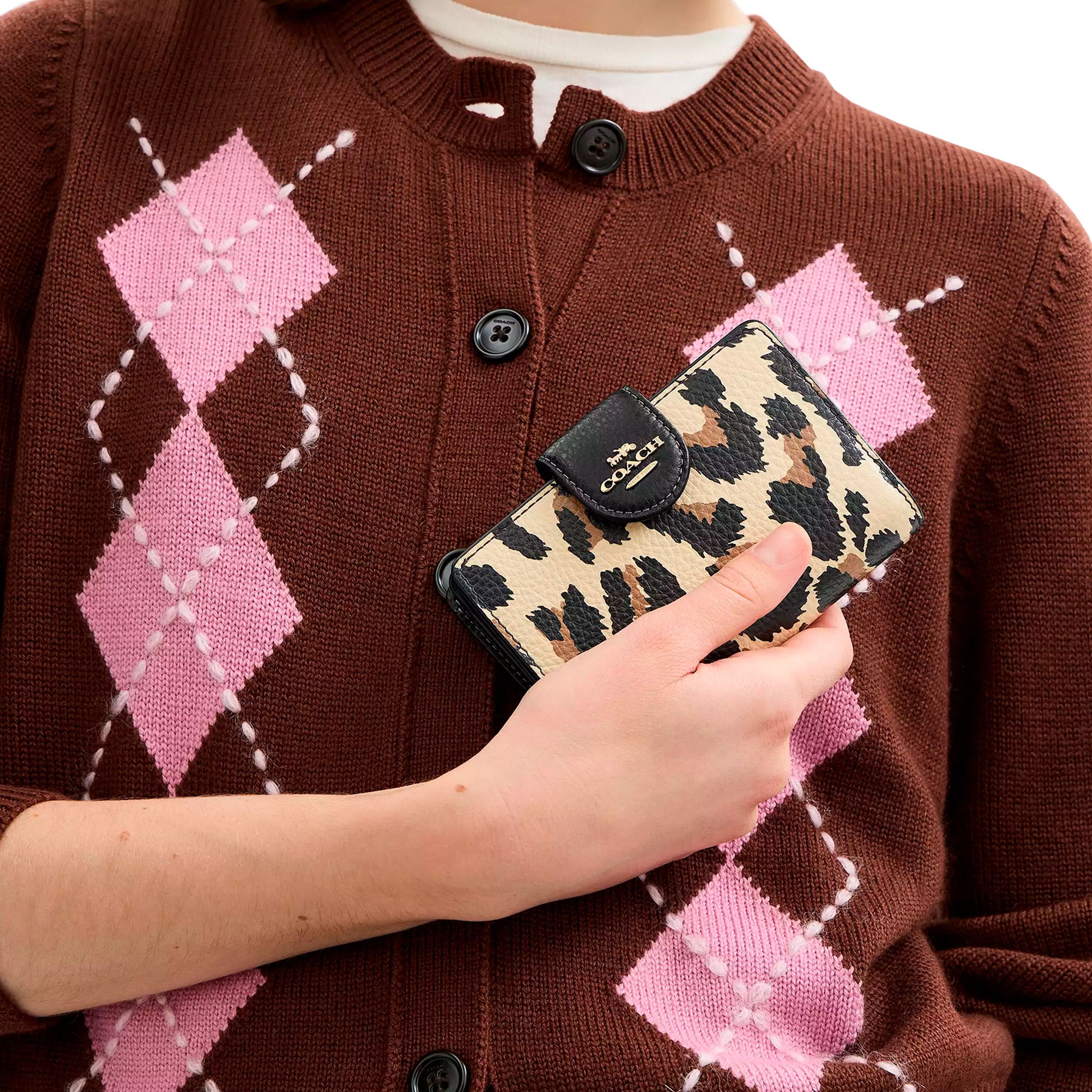 Cartera Coach Medium Corner Zip Wallet With Leopard Print