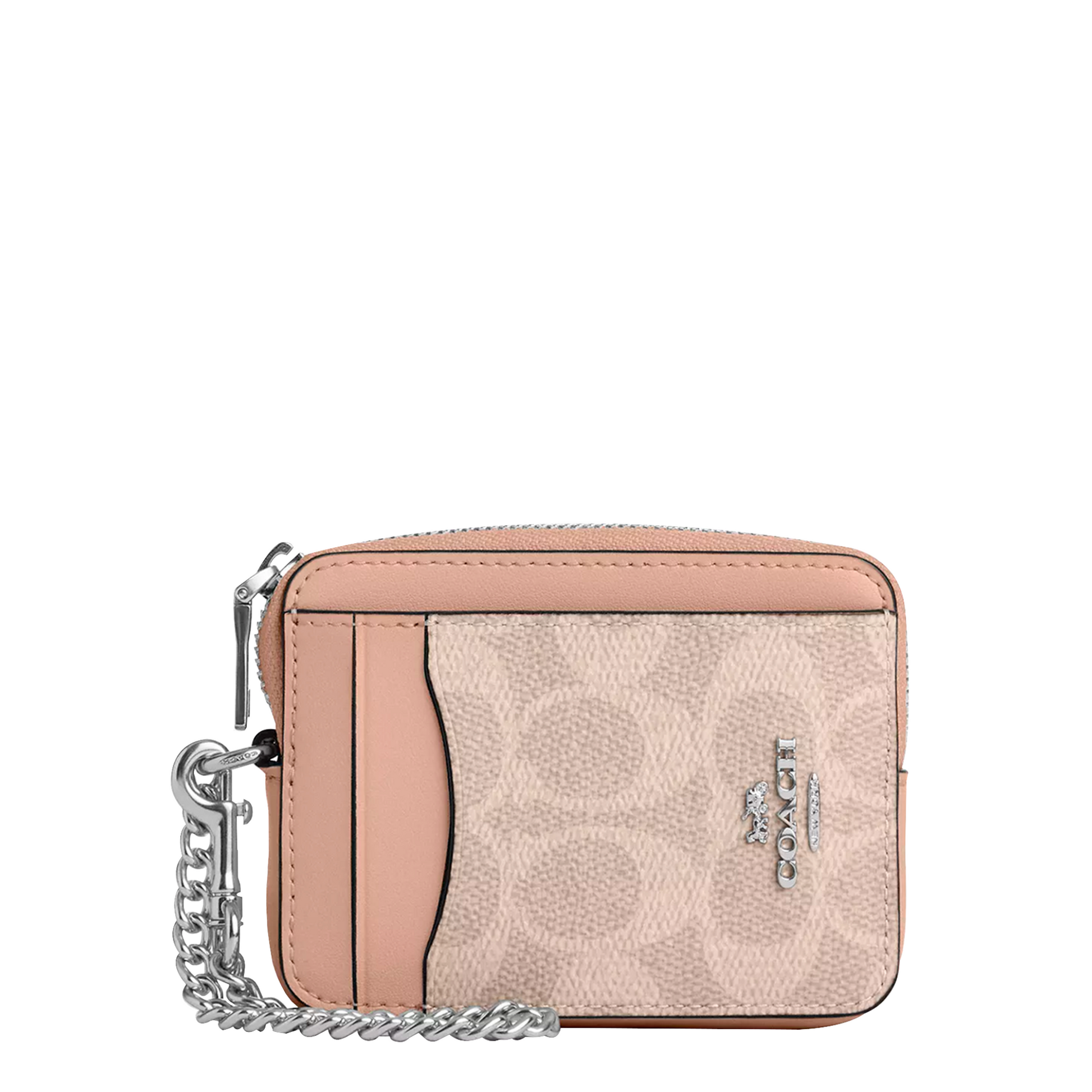 MONEDERO PARA MUJER MARCA COACH. MODELO: ZIP CARD CASE IN SIGNATURE CANVAS SAND TAUPE. CW883. 196395550432. CON ETIQUETA